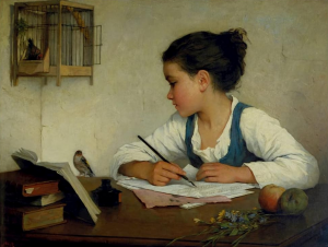Un siglo y medio separa estas dos imágenes, pero el tiempo es una convención interesada. Son la misma imagen, aunque una haya sido hecha con pincel sobre lienzo, y la otra con mirada sobre píxel. Las dos han sido realizadas por la mujer que sondea el futuro de la niña que refleja, imposible de prever, pero posible de soñar. Una está hecha por una pintora que luchaba contra el patriarcado de la pintura, y la otra por una bibliotecaria que también sabe mucho de ese patriarcado, pero que se ha rebelado, que ha conquistado un espacio de momento limitado, pero que se volverá infinito si las ideas que vuelan del papel a la mente de la niña que retrata rompen las barreras. Es intrigante la cercanía, la semejanza entre las dos imágenes, precisamente por eso: porque ha pasado más de un siglo, porque las separan miles de kilómetros y culturas distintas, pero no ha pasado ni un instante siquiera, porque anulan la distancia y las barreras culturales. Arte no es copiar ni falsear la realidad, arte es experimentar con la realidad para crear otra mejor.