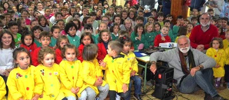 El último ha sido el Colegio Público Príncipe de Asturias, de Tapia de Casariego, que dedicó el día del Niño al Sáhara, convirtiéndolo en el Día del Niño Refugiado. Emocionante fue ver cómo los niños iban llenando un enorme panel con los enunciados de los derechos básicos. Para ello, Nicandro G. Gayol y Gonzalo Moure hablaron a todo el colegio, incluidos muchos padres, de Vacaciones en Paz y del Bubisher.