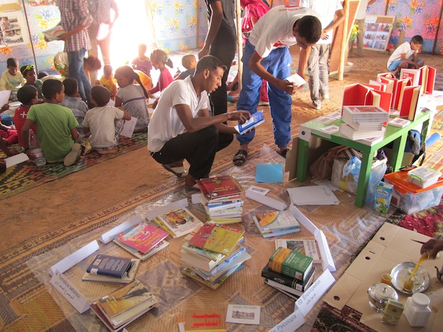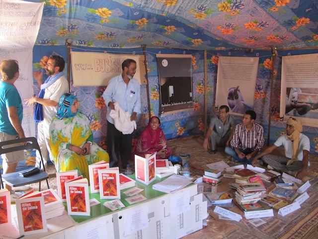 Y en medio de esa explosión de imágenes de celuloide y de lluvia de estrellas , el Bubisher y su empeño por volar hacia la libertad, abrió sus alas y ofreció su Nido, cargado de libros y de ansias de cultura, a las más de doscientos personas que se desplazaron a Dajla en este X FiSahara , pero, sobre todo, a la población saharaui de este campamento en el que, algún día, el Bubisher no será una presencia puntual y pasajera, sino una biblioteca, un bibliobubisher, una posibilidad de abrir un camino por el que circule la cultura.