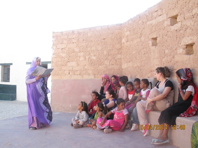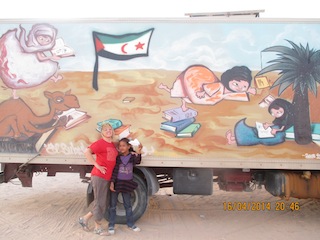 Por las tardes todas participamos en las actividades en el Nido. Que por cierto, disfrutamos de lo lindo. Tanto o más que l@s chavales. La hora del cuento (de 5’30 a 7’30 horas) se desarrolló cada día con más entusiasmo y participación. Buceamos en las estanterías del Nido y leemos, dramatizamos, cantamos y contamos cuentos populares, universales, y cuentos amorosos y picaruelos. Un día con trilingüismo (italiano, español, hasanía). Otro con disfraces. Otro con maquillaje. Que si barquitos de papel, que si unas trenzas de Caperucita, que si unas piedras y unas miguitas de Hansel y Gretel, que si unos niños haciendo de cigarra y de buey, y de burro, y de… Canciones y bailes saharauis, juegos musicados de los niños… Historias mejicanas, alicantinas, magrebís y aragonesas. Una gozada compartir e intercambiar.