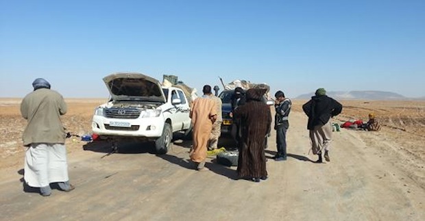 Llegamos a Zuerat al mediodía con otra rueda pinchada. Y con ella pinchada recorrimos los tres últimos kilómetros del viaje, hasta que entramos en Itihadía, el local del gremio de transportistas.