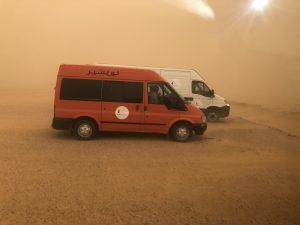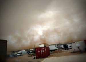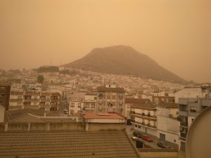 En apenas cuatro años los saharauis cumplirán sus bodas de oro como refugiados con el siroco, el polvo en suspensión, las tormentas de arena. De aquellas tormentas estos polvos que estos días cubren nuestros cielos. Qué difícil respirar ayer, hoy. Cómo se meten por todas partes esas partículas que tiñen el aire, ¿verdad? Pues los saharauis han vivido muchos ayeres engullidos por el siroco, tragando tierra, respirando polvo. Y… ¿cuántos mañanas más?