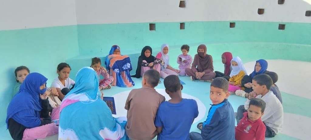 Como cada tarde cuando el sol comienza a caer detrás de las dunas, tiñendo el campamento de un dorado suave, un grupo de niños corren hacía la biblioteca bubisher. Se sientan en círculo, formando sobre el suelo una pequeña constelación humana en medio del patio, algunos cruzando las piernas, otros apoyando las manos detrás de sí, inquietos pero expectantes.