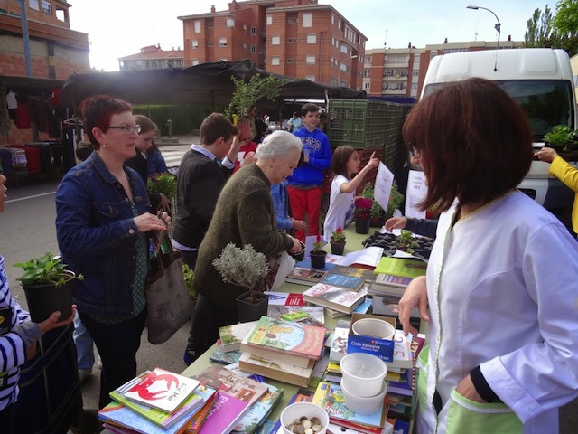 Paralelamente,  programamos otra actividad que surgió a raíz de  las tertulias dialógicas que se realizan en nuestro colegio a lo largo de todo el curso. Compartimos la lectura de libros y comentamos todos los sentimientos que nos afloran. Uno de los libros que tenemos para esta actividad es PALABRAS DE CARAMELO. Kori, el protagonista, es un niño saharaui que vive en uno de los campamentos de refugiados. Él nos ha hecho sensibilizarnos con la situación de este pueblo y hemos querido compartir con todos los niños que viven en estos campamentos nuestros libros.  Para ello, durante los diez días anteriores al día del libro  hemos traído al colegio libros y cuentos que ya hemos leído, con el fin de venderlos posteriormente y sacar fondos. Así durante el viernes 24, los alumnos del cole se convirtieron en vendedores del mercadillo semanal de Fuenmayor. Con la inestimable ayuda de familiares del centro, el colegio colocó un puesto en el que vendimos los libros donados por los niños y plantas donadas por el instituto. Con todo llegamos a recaudar  800 euros que destinamos  al proyecto   BUBISHER para crear bibliotecas en los campamentos de refugiados Saharauis.