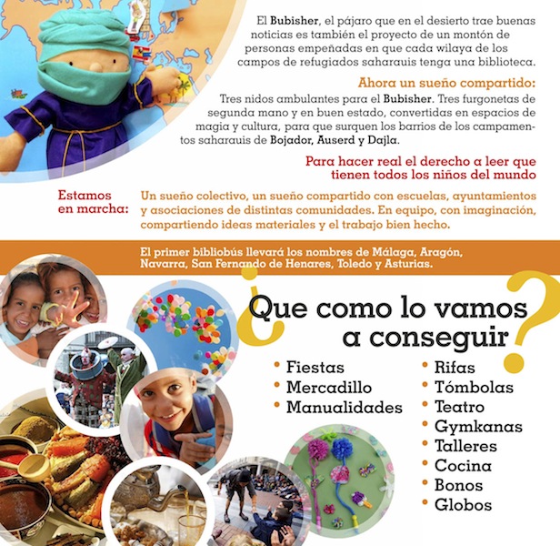 Maestros de diferentes Comunidades Autónomas nos hemos reunido para hacer realidad este sueño juntamente con otras iniciativas como la del corredor Vicente Grande Duque: Conseguir tres nidos ambulantes para el Bubisher, tres furgonetas convertidas en espacio de magia y cultura para que surquen los barrios de los campamentos saharauis: Bojador, Auserd y Dajla.