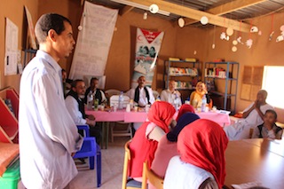 En Auserd los actos más significativos tuvieron lugar por la mañana y contaron con la presencia del Gobernador de la Wilaya y del Coordinador General del Bubisher, Hamida Abdulah. En la mesa de las autoridades se dejaron varios ejemplares impresos del texto de Galeano sobre los muros. Abrió el acto nuestro bibliotecario, Ahmed Mahmud, siendo el principal tema de su discurso el impacto del Bubisher en el campamento de Auserd y la importancia de la cultura.