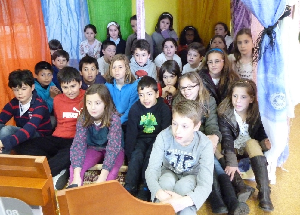 Y ya estamos llegando al final: un dí­a, cuando Maribel pensó en instalar la Jaima en su biblioteca, pensó en hacer sesiones de Kamishibai. Con el resultado que veis. Y con esas caras, esas miradas que también veis. ¡El Sáhara en Ferrol! Con un poquito de sol en sus caras y de siroco en su pelo, tales para cuales. Conociéndose para quererse. Jaima y Kamishibai mediantes.