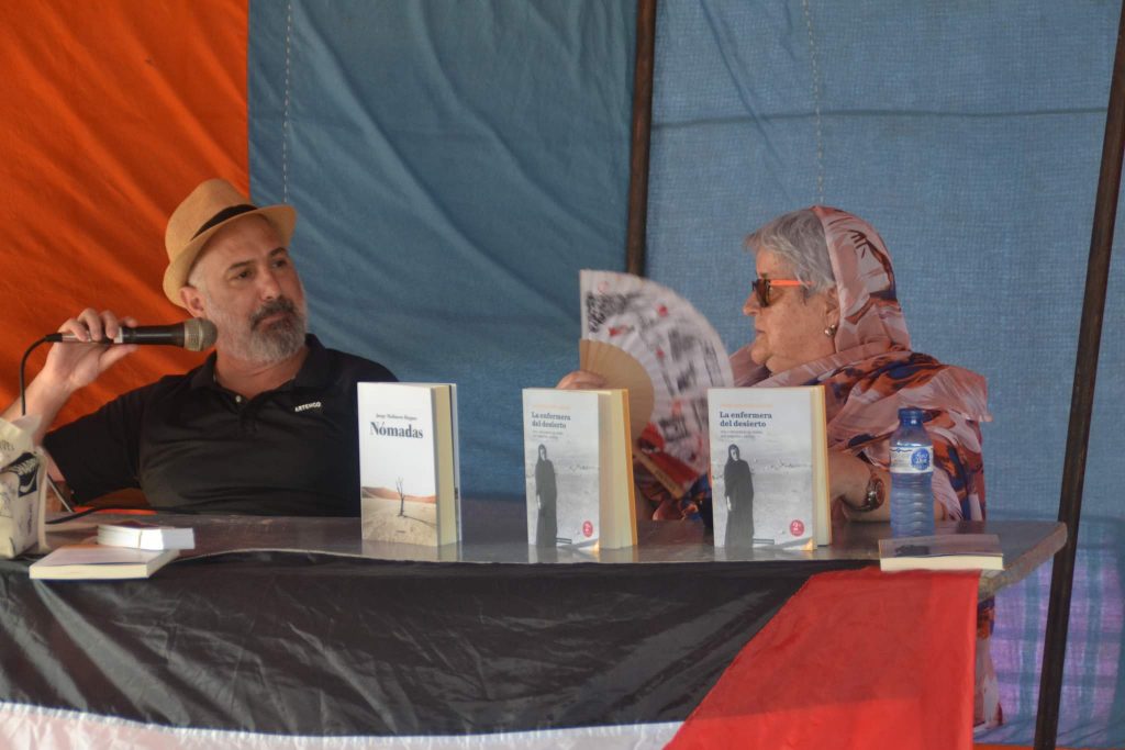 No una, varias; un frig en la playa de Vilanova i la Geltrú, cerca de Barcelona, para celebrar el aniversario de la fundación del Frente Polisario, mediante una serie de actos festivos. Entre ellos, una presentación más de «La enfermera del desierto», de Jorge Molinero, con la presencia de la propia enfermera, Montse Aizcorbe. Un libro que relata su vida en el Sáhara en aquellos años del principio de la lucha por la independencia, y que está teniendo un gran éxito. Si lo deseas, puedes pedirlo a pseguratorres@hotmail.com. Ambos, Montse y Jorge, son bubisheros y llevan todo lo lejos que pueden la voz del Sáhara, la reivindicación de su cultura a través de los libros, de la palabra.