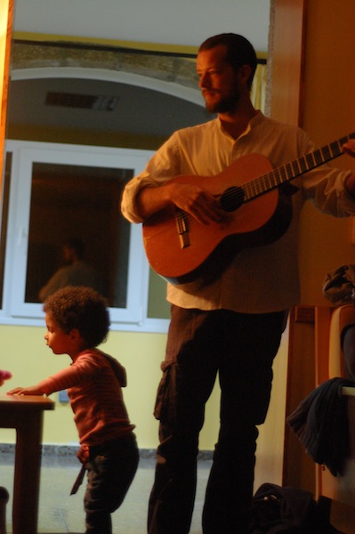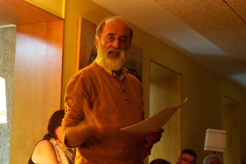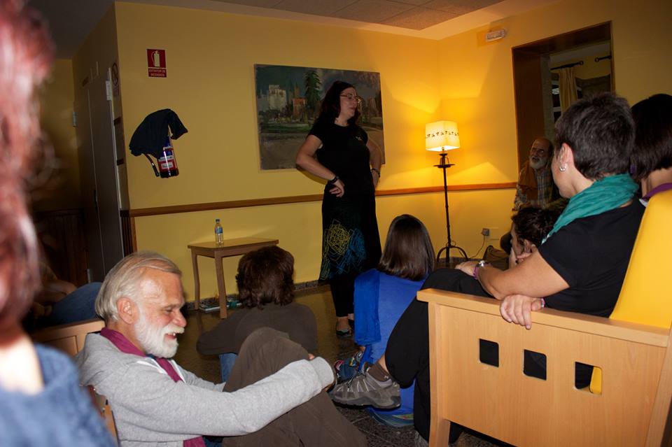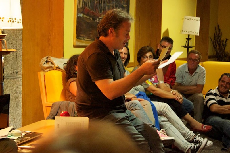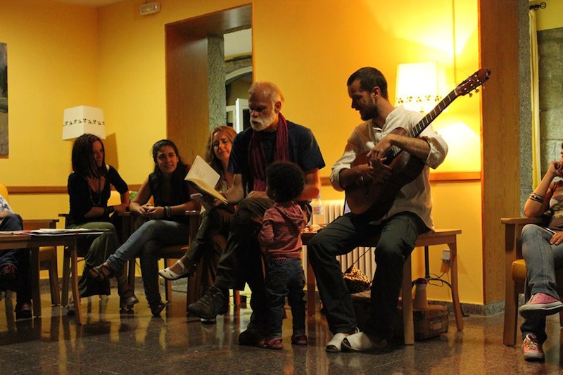 Una maravillosa sorpresa fue la voz de Geli, compañera de vida y de música de Ángel Oria, quienes tomaron el relevo de la guitarra de Fernando para cantarnos preciosas canciones. Y luego el tierno y enorme Raúl Vacas, que sorprende a todos siempre con la ductilidad de la poesía hacia el juego, siempre con una vuelta más de tuerca. Fernando, autor de un texto bello y vigoroso; Manolo y su inolvidable relato de las aventuras húmedas y semisólidas de una linterna y un pie desnudo en la noche de los campamentos, Jorge, que no ocultó su dulce acento porteño para leernos su poema de arena y recuerdos.