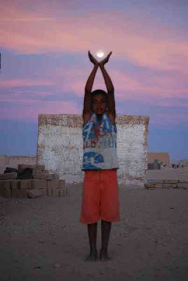 El sol se habí­a despojado del luto y la mañana lucí­a brillante.  El viento se alejó cuando  la madre de Ahmed le llamó para desayunar. Antes de entrar en la jaima se limpió las lágrimas que todaví­a corrí­an por su cara,  se sorbió los mocos y  escuchó de nuevo. El aire ya sólo tení­a un sonido: «toc, toc, toc,toc ” el latido del corazón de Aminatu. El latido del pueblo saharaui.