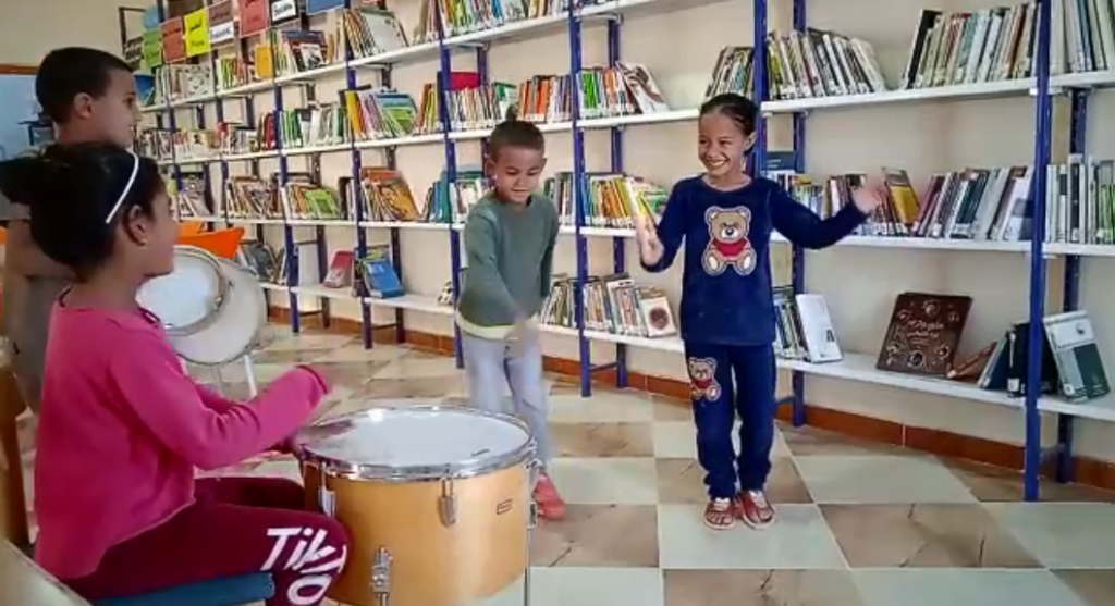 Como a todos los niños, a nosotros nos gusta cantar. No solo es divertido, también es una manera de conectar con nuestra cultura, de trabajar en equipo y de desarrollar nuestro genuino sentido del ritmo. Cuando cantamos y bailamos nos sentimos felices, disfrutamos, nos concentramos, mejoramos nuestra forma de expresarnos. Por eso nos encanta que, de vez en cuando, en las bibliotecas hagamos actividades musicales. Aprendemos los nombres de muchos instrumentos, construimos algunos con cosas que tenemos por ahí, botellas, piedras, latas… También en las bibliotecas hay algunos de verdad, son muy chulos.
