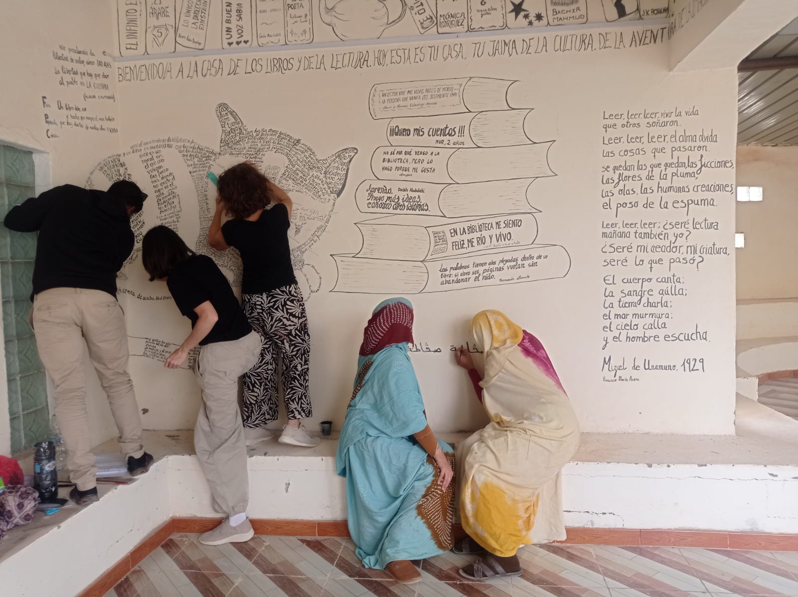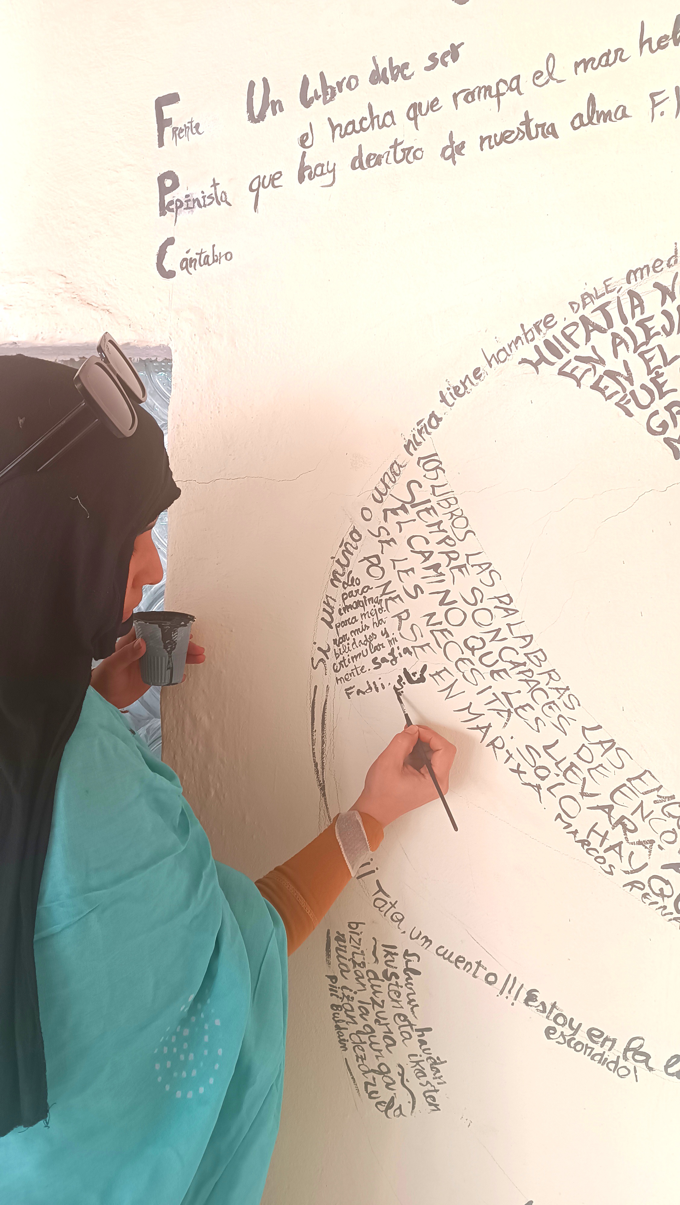 Gracias a todas las personas que rodasteis palabras. Shukran, Abida, Bachir, Leila, Safía, Cheje, niños y niñas de la biblioteca de Ausserd y todas las personas que cogisteis el pincel,  por vuestro cariño, participación y cuidarnos con el té.